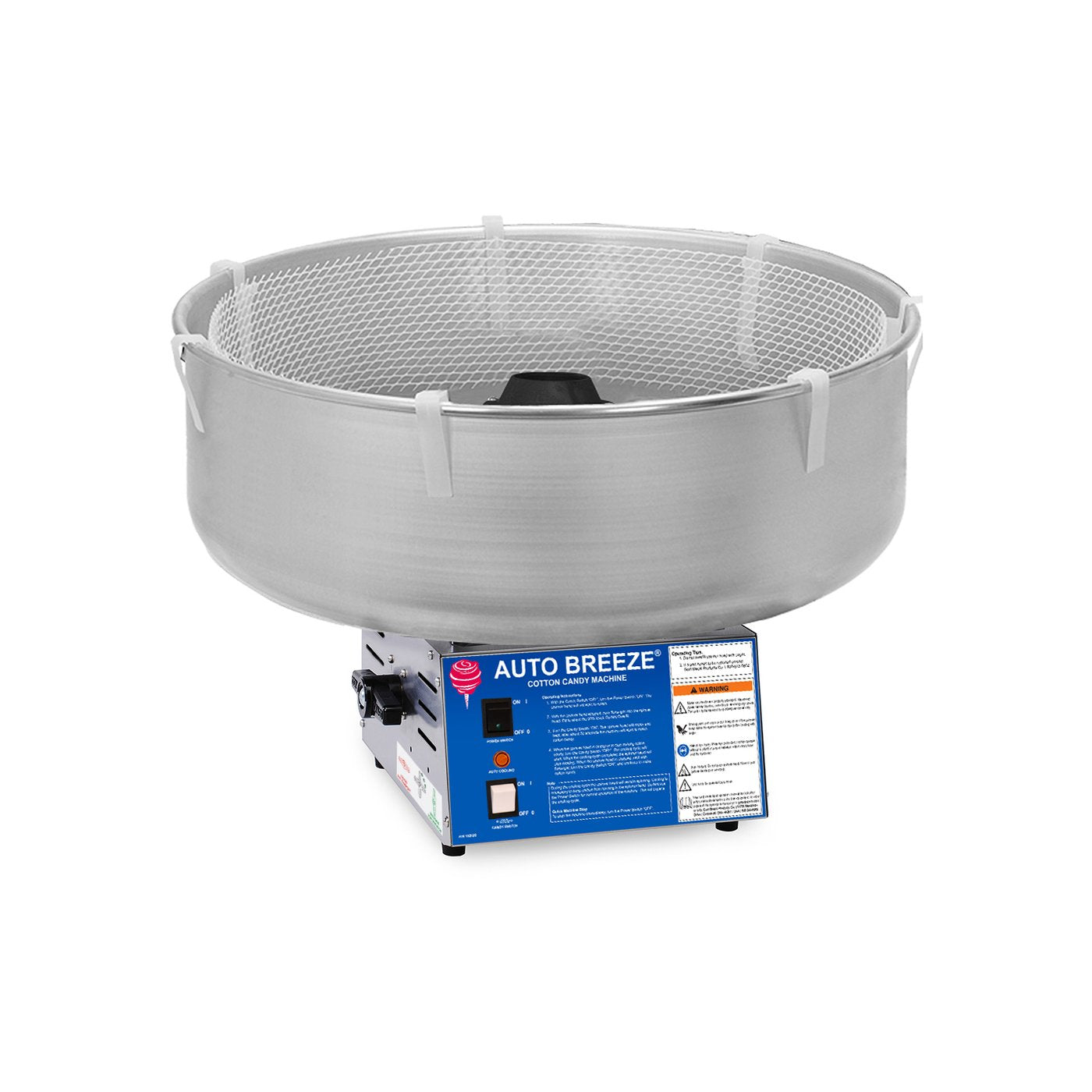This machine is the next step up from the Econo Floss and perfect for a small concession stand or store With automatic heat control the auto breeze is by far the easiest and most hassle free machine you could ask for. Features - 5" Tubular heat element - auto heat adjustment, cool down (clogging prevention) & shutoff - single switch control - stainless steel cabinet design. Machine serves 3-4 cones per minute