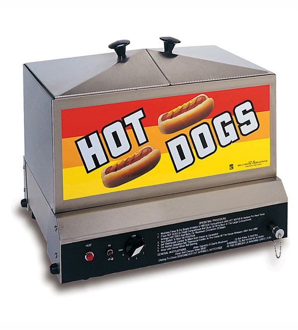 Most durable steamer you can buy. Stainless steel lids. No painted parts. Hot dog juice tray (standard) makes your machine easier to clean and helps prolong the heating element life. Holds up 80 hotdogs and 40 buns, includes adjustable heat control